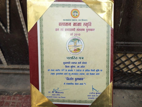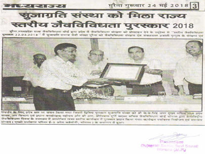राज्य स्तरीय बसामन मामा स्मृति वन एवं वन्यप्राणी संरक्षण पुरस्कार बर्ष 2010 से माननीय श्री शिवराज सिंह चैहान मुख्य मंत्री म0प्र0 द्वारा सुजाग्रति समाज सेवी संस्था मुरैना को सम्मानित किया गया।