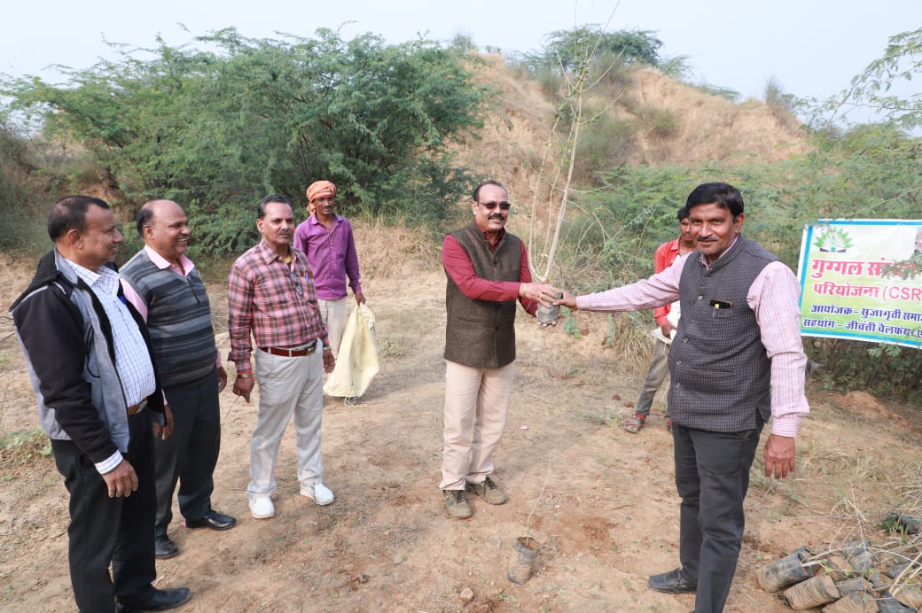 एमजेएफ लायन तुलसीदास अग्रवाल, एडमिनिस्ट्रेटर लायंस क्लब मुरैन, अध्यक्ष सुजागृति समाज सेवी संस्था मुरैना जाकिर हुसैन और श्रीनिवास शिवहरे, सदस्य लायंस क्लब मुरैना और श्री रविंद्र सिंह कुशवाहा रिटायर्ड एसडीओ वन विभाग लहार भिंड मध्य प्रदेश से, स्वयं सहायता समूह पिपरई से 30 31जुलाई 2024 को करीब 100 लोगों के द्वारा आज दिनांक 30 जुलाई 2024 को मित्र दिवस के शुभ अवसर पर हमारा मित्र पौधा गूगल का रोपण देवरी गांव के सामनेआज वनभूमि में 2 हेक्टर जगह जिसमें पूर्व में आमला लगाए गए थे 2500 पेड़ों का रोपण किया गया यह कार्यक्रम सुबह 9:00 बजे से 6:00 बजे तक चला कार्यक्रम सुजागृति समाज सेवी संस्था मुरैना द्वारा डाबर कंपनी, जीवन्ति वेलफेयर सोसाइटी के सहयोग से किया गया। इस अवसर पर संस्था अध्यक्ष द्वारा बताया गया कि इस समय वन मंत्री माननीय रामनिवास रावत एवं कृषि मंत्री माननीय एडल्ट सिंह कंसाना दोनों ही चंबल संभाग के हैं इस समय गूगल का सर्वाधिक रोपण किया जासकता है। जिससे प्रजाति का संरक्षण तो होगा ही, साथ ही गरीबों की आजीविका सुनिश्चित होगी तथा बीहड़ भूमि जो अनुपयोगी पड़ी भूमि उसका भी भरपूर उपयोग होगा साथी कंपनियों को जो विदेशौसे गूगल मंगाया जाता है वह नहीं मांगना पड़ेगा देश की इकोनॉमी के लिए यह पौधा बड़ा लाभकारी होगा अन्य पौधों के स्थान पर इस पौधों का रोपण किया जाना लाभकारी होगा देखने में आ रहा है जो पौधे किसी ज्यादा उपयोग के नहीं है जैसे परदेसी बाबुल करंच आदि इनका रोपण किया जाता है। क्योंकि यह आसानी से लग जाते हैं परंतु यह जैव विविधता की दृष्टि से परदेसी वबूल तो घातक सिद्ध हो रहा है यह राक्षस प्रवृत्ति का पौधा है एक को काटने पर 10 पैदा हो जाते हैं ऐसे पौधों का रोपण किया जाना आवश्यक है इस समय जिससे लोगों को लाभ एवं पर्यावरणीय लाभ हो और उन्हें पानी की भी आवश्यकता ना हो और पशु भी नहीं खाते हौ ऐसा पौधा गूगल है। धड़कती धरती और मौसम के मिजाज को देखते हुए तथा इसके लिए यहां की मिट्टी भी मुफीद है को देखते हुए माननीय मंत्री महोदय एवं संबंधित विभागों से यह अपील है की सबसे महंगी लगभग गूगल का सर्वाधिक रोपण किया जाए और संरक्षण एवं संवर्धन किया जाए। क्योंकि गूगल का भाव₹2000 किलो है और उसकी मांग सर्वाधिक है।