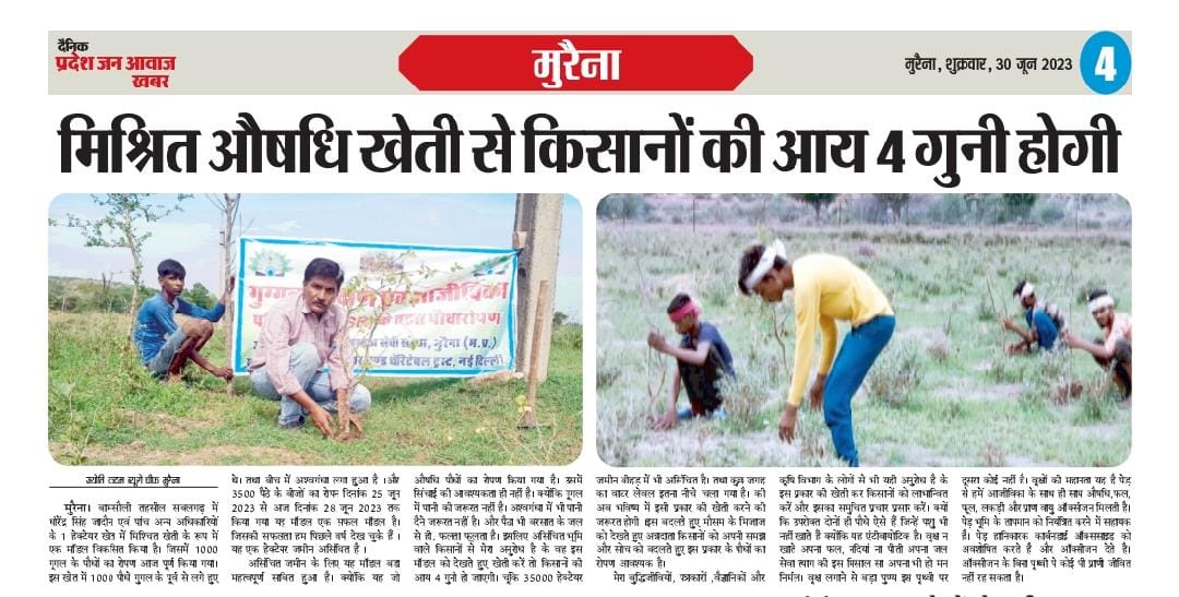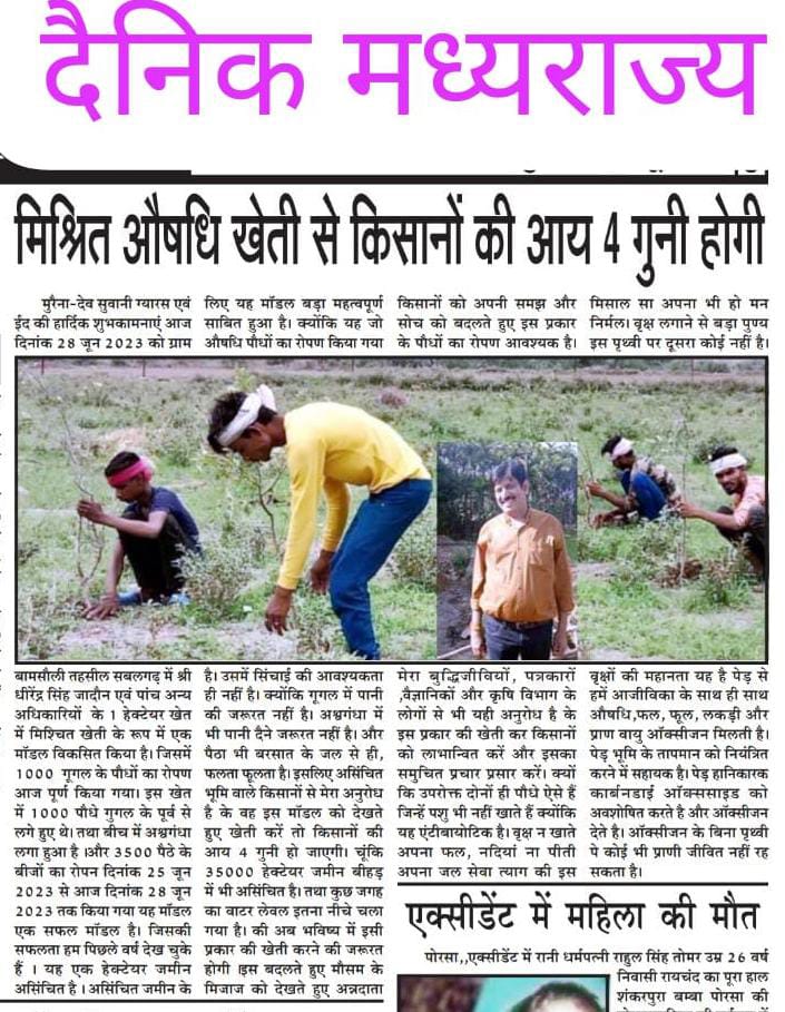 मुरेना l यह एक सफलता की कहानी है दूरस्थ ग्राम जिला मुरैना से 90 किलोमीटर दूर के धीरेन्द्र सिंह जादौन पुत्र स्व श्री रामपाल सिंह जादौन ग्राम बामसौली तहसील सबलगढ जिला मुरैना ,मध्यप्रदेश ने असिंचित् एव्ं वंजर भूमि में सोना उगाया कहावत को चरितार्थ किया हैं उनके बताये अनुसार कि मैं ऐसी खेती करू जिसमे पानी बहुत कम लगे ,बार बार की मेहनत भी कम लगे क्योंकि मेरे खेत के पास पानी की उपलब्धता बहुत ज्यादा नही है ,साथ ही मजदूर भी आसानी से नही मिलते ।लेकिन मन मे यह भी था कि खेती फायदे का सौदा भी बने।इसी बीच इस बारे में मेरी चर्चा सुजागृति समाज सेवी संस्था के श्री ज़ाकिर हुसैन से हुई ।उन्होंने मार्ग दर्शन दिया कि यदि आप थोड़ा धैर्य रखें और मेरी बात पर भरोसा रखें तो गुग्गल और सतावर का रोपड़ अपने खेत मे कर इस जमीन के भाग्य बदल सकते हैं ।यह एक ऐसी प्रजाति है जिसे संरक्षण की जरूरत है।गुग्गल में 5,6 साल बाद गोंद आना शुरू होगा और उसकी कीमत इतनी होती है कि आपका 5 साल का इंतजार करना भी आपको फायदे का सौदा ही साबित होगा।साथ ही शतावर की फसल से 2 साल बाद ही आपको आमदनी शुरू हो जायेगी।इसके अतिरिक्त श्री ज़ाकिर हुसैन ने बताया कि गुग्गल और शतावर के बीच मे जो जगह है उसमें अश्वगंधा भी लगा ले तो उस से 6 माह में ही आपकी आमदनी शुरू हो जाएगी।उन्होंने कहा कि आपको बस थोड़ा धैर्यऔर थोड़ा विश्वास रखना होगा तथा अपने खेत की सुरक्षा के लिए फेंसिंग और निगरानी की व्यवस्था करना होगी ताकि गुग्गल,शतावर और अश्वगंधा को जंगली जानवरों के नुकसान से बचाया जा सके। श्री ज़ाकिर हुसैन ने कहा हमारी संस्था राष्ट्रीय औषध पादप बोर्ड के सहयोग से गूगल और जैव विविधता संरक्षण आजीविका परियोजना के तहत आप के खेत में गूगल सताबर लगाने हेतु उन्होंने बताया कि ये सब पौधे हम उपलब्ध कराएंगे और इन से होने वाले उत्पादों के विक्रय में भी सहयोग करेंगे।ये विचार धीरेंद् सिंह को पसंद आया और उन्होंने अपने ग्राम बामसौली के बालाजी मंदिर के पास अपनी एक हेक्टेयर जमीन में गुग्गल लगाने का निर्णय जून 2021 में लिया। उसके बाद मई 2021में शतावर और नवंबर 2021 में अश्वगंधा भी लगाई।इनके लगाने के बाद मात्र एक बार पानी दिया ,उसके बाद से ये सब पौधे आज निकल आये है तथा अच्छी स्थिति में है .इस कम पानी वाले इलाके में आसपास के बहुत सारे किसान औषधीय खेती करने के लिए लालाइत है तथा संपर्क बनाए हुए हैं निश्चित रूप से इसका सकारात्मक परिणाम देख कर औषधीय पौधों की खेती करेंगे जिससे लुप्त होती हुई प्रजाति तो बचेगी ही साथ ही साथ कंपनियों की डिमांड भी पूरी होगी तथा किसानों की आय तीन से चार गुनी बढ़ जाएगी क्योंकि आज के समय में गूगल गौद का भाव ₹2000 / ,शतावर ₹300 किलो ,अश्वगंधा की जड़ ₹700 किलो चल रहा है 10,00000 / की आय होगी सा
