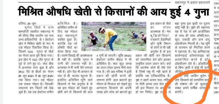 मिश्रित औषधि खेती से किसानों की आय 4 गुनी होगी।