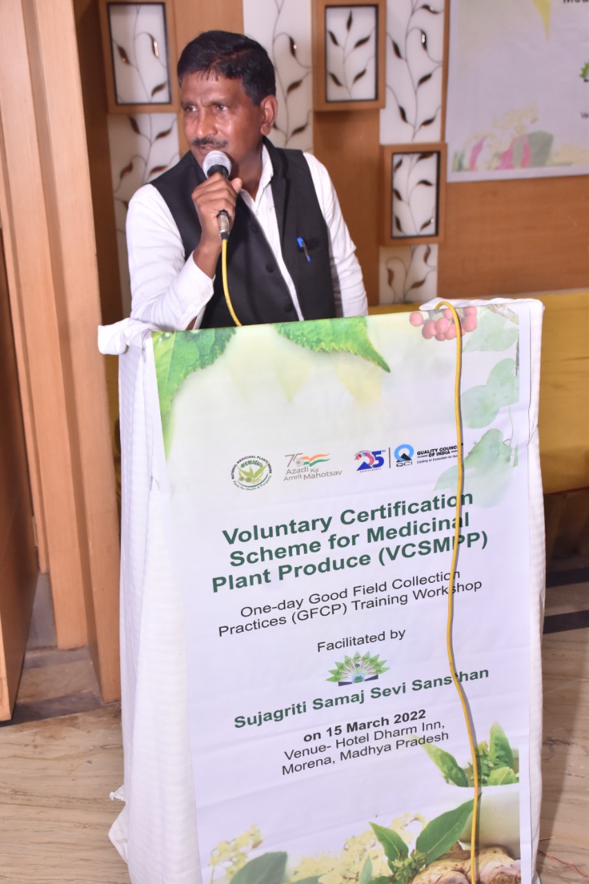 औषधीय उपज की मांग शुद्धता से बढ़ती है यह कहा कृष्ण गोपाल क्यूसीआई दिल्ली से पधारे हुए वैज्ञानिक ने तथा गूगल का संरक्षण ही हमारी प्रतिबद्धता होनी चाहिए विषय विशेषज्ञ डॉक्टर विनोद मिश्रा द्वारा बताया गया।