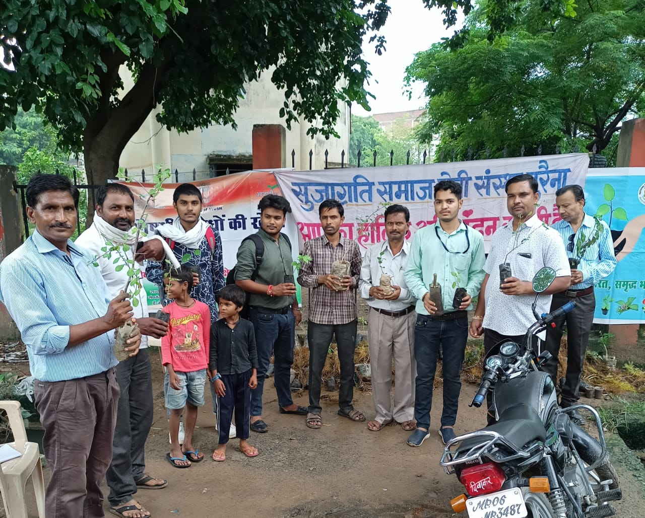आज दिनांक 7.8.2020 को ग्राम पंचायत पहाड़ी के चक्क कॉलोनी सफेरे, मोगियों का पुरा तहशील मोरेनामैं सुजागृति समाज सेवी संस्था मुरैना द्वारा गणेश चतुर्थी के शुभ अवसर पर पौधारोपण कार्यक्रम का आयोजन किया गया जिसमें विभिन्न प्रजातियों के पौधों का रोपण गुग्गल, सताबर जामोंन, नीम का किया गाया पर्यावरण की सुरक्षा एवं समुदाय की आजीविका का साधन भूमि कटाव को रोकने के उद्देश्य से यह कार्यक्रम आयोजित किया गया है इस कार्यक्रम में हितग्राही किसान ग्राम सरपंच पहाड़ी बनवारी लाल गुर्जर राजेन्द्र सिंह सिद्दर यादब सुजागृती समाज सेवी संस्था के लोग भागीदारी करेंगे तकनीकी सहयोग के लिए वन विभाग से कुलश्रेष्ठ डिप्टी रेंजर पलिया फोरेस्ट गार्ड मुरैना रहेंगे पेड़ ही प्रदूषण के जहर को बचाते हैं हारी बीमारी से हम को बचाते हैं। हरियाली ही खुशियां ली है।