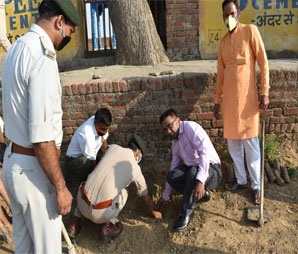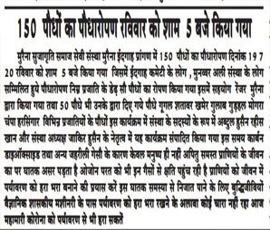 150 पौधों का पौधारोपण रविवार को शाम 5 बजे किया गया