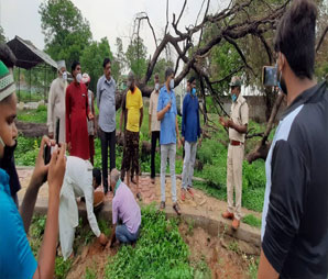 औषधि पार्क के लिए जन समुदाय की पहल आज कुस अमावस्या के अवसर पर दिनांक 19.8.2020 को ग्राम बमसौली में जनसमुदाय, जनप्रतिनिधियों एवं हितग्राही किसानों ब भक्त जनों के सहयोग से खो वाले हनुमान जी पर एक हेक्टेयर जमीन को औषधि पाक बनाने के लिए पौधारोपण कार्यक्रम का आयोजन सु जागृति समाज सेवी संस्था मुरैना द्वारा किया गया पौधारोपण से पूर्व पूर्व में जो पौधे लगाए गए थे उन पौधों की सफाई की गई घास हटाया गया फिर वृक्षारोपण किया गया वृक्षारोपण में गूगल, सतावर ,अग्नि मांथ, जामुन और बर्गद आदि के विभिन्न औषधीय पौधों का रोपण किया गया इस कार्यक्रम में श्री जितेन्द्र सिंह तोमर ,श्री राकेश पचौरी सबलगढ़ से ग्राम बमसौली के सरपंच मुरारी लाल रावत जैव विविधता प्रबंधन समिति के अध्यक्ष सद्स्य व हितग्राही किसान मुरैना से राकेश श्रीवास्तव सुशील कुमार नागर राजेन्द्र ,सुजागृति समाज सेवी संस्था से श्री जाकिर हुसैन मुन्नालाल आदि लोगों ने भागीदारी की यह वृक्षारोपण यहां एक औषधि पार्क बने, पर्यावरण की सुरक्षा हो गरीबों की आजीविका सुनिश्चित हो इस उद्देश्य को लेकर हरियाली से खुशहाली की ओर समुदाय को ले जाने का प्रयास किया जा रहहै यह कार्यक्रम राष्ट्रीय औषधीय पादप बोर्ड के सहयोग से आयोजित किया गया लगाये गए पौधों का रखरखाव का संकल्प भी ग्रामीण जनों ने लिया साथी सरपंच साहब ने ट्री गार्ड लगाने का आश्वासन भी दिया गया |
